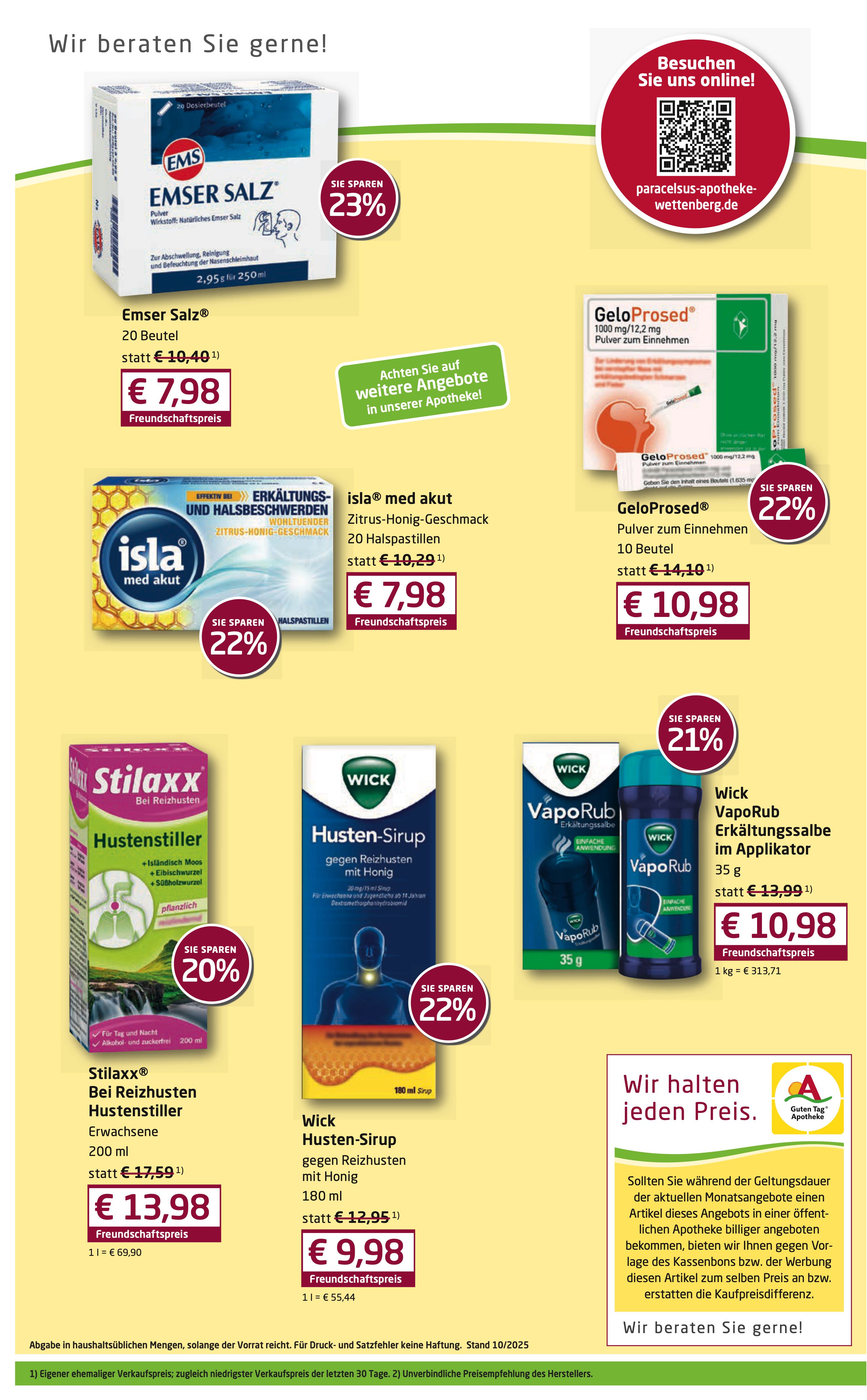 Übrigens: Ihre Medikamente können Sie bei uns auch ganz bequem online bestellen. Unser Botendienst bringt sie zuverlässig bis an Ihre Haustür – ideal, wenn Sie gerade nicht mobil sind oder sich Wartezeiten sparen möchten.